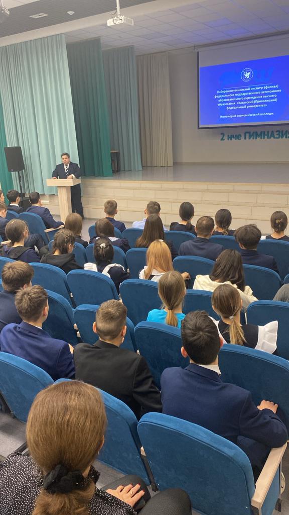 Яр Чаллы шәhәре тарихында өлкән буын вәкилләренә КамПИ дип таныш, хәзер КФУ карамагында булган Чаллы институты , Алдынгы инженерия мәктәбе хезмәткәре гимназиянең 11 сыйныф укучылары белэн очрашуга килде. Ул әлеге уку йорты әзерли торган белгечлекләр, укырга керү шартлары, алдагы перспективалары хакында сөйләде. Укучыларның hөнәри белем алу турында карашлары тагын да киңәйде, үз шәhәрендәге югары уку йорты бик кирәкле белгечлекләр бирүен әле белмәүчеләр дә булгандыр, әлеге очрашу кирәк вакытта узды.