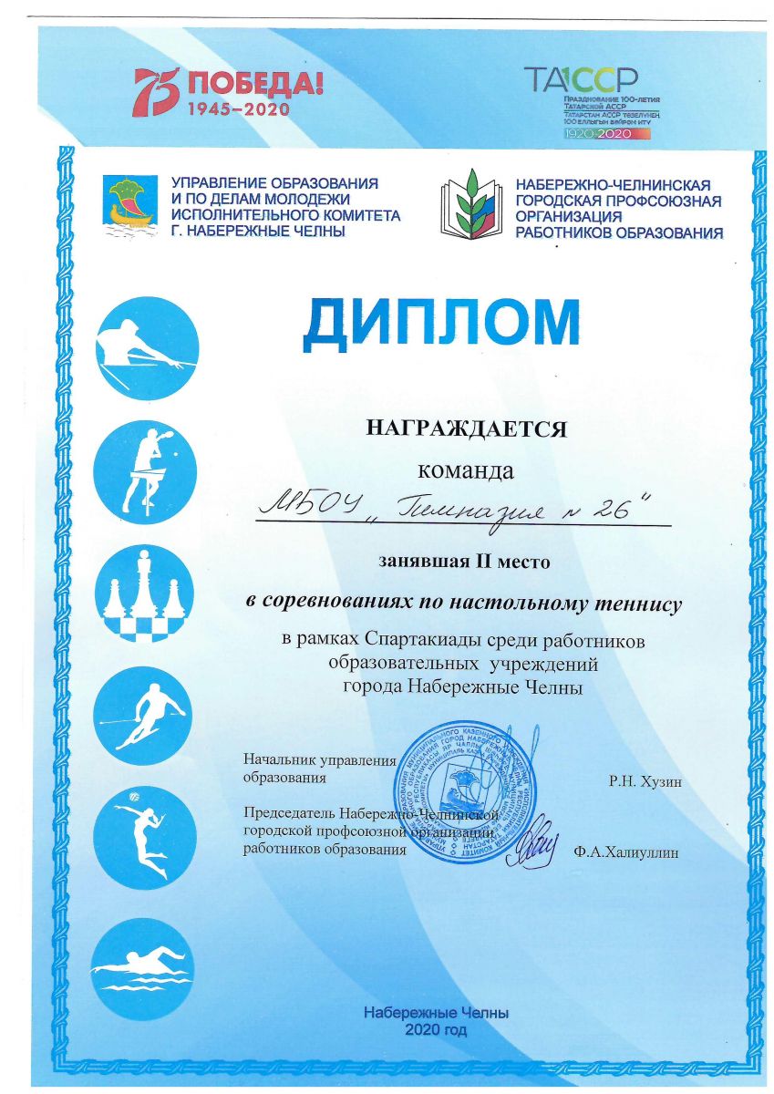 В рамках Спартакиады среди работников образовательных учреждений команда МБОУ "Гимназия №26" заняла II место.