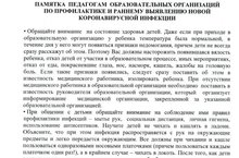 Памятка по профилактике и раннему выявлению новой короновирусной инфекции 08.09.2020