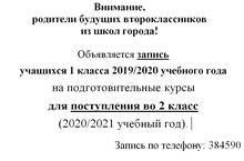 Внимание, родители будущих второклассников из школ города! 11.12.2019