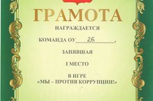 04.12.15г в гимназии прошла муниципальная игра "Мы против коррупции", принимали участие 18,22,26 школы. Наша команда "Пустые карманы" заняла первое место. Фото с мероприятия.