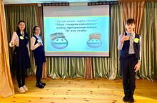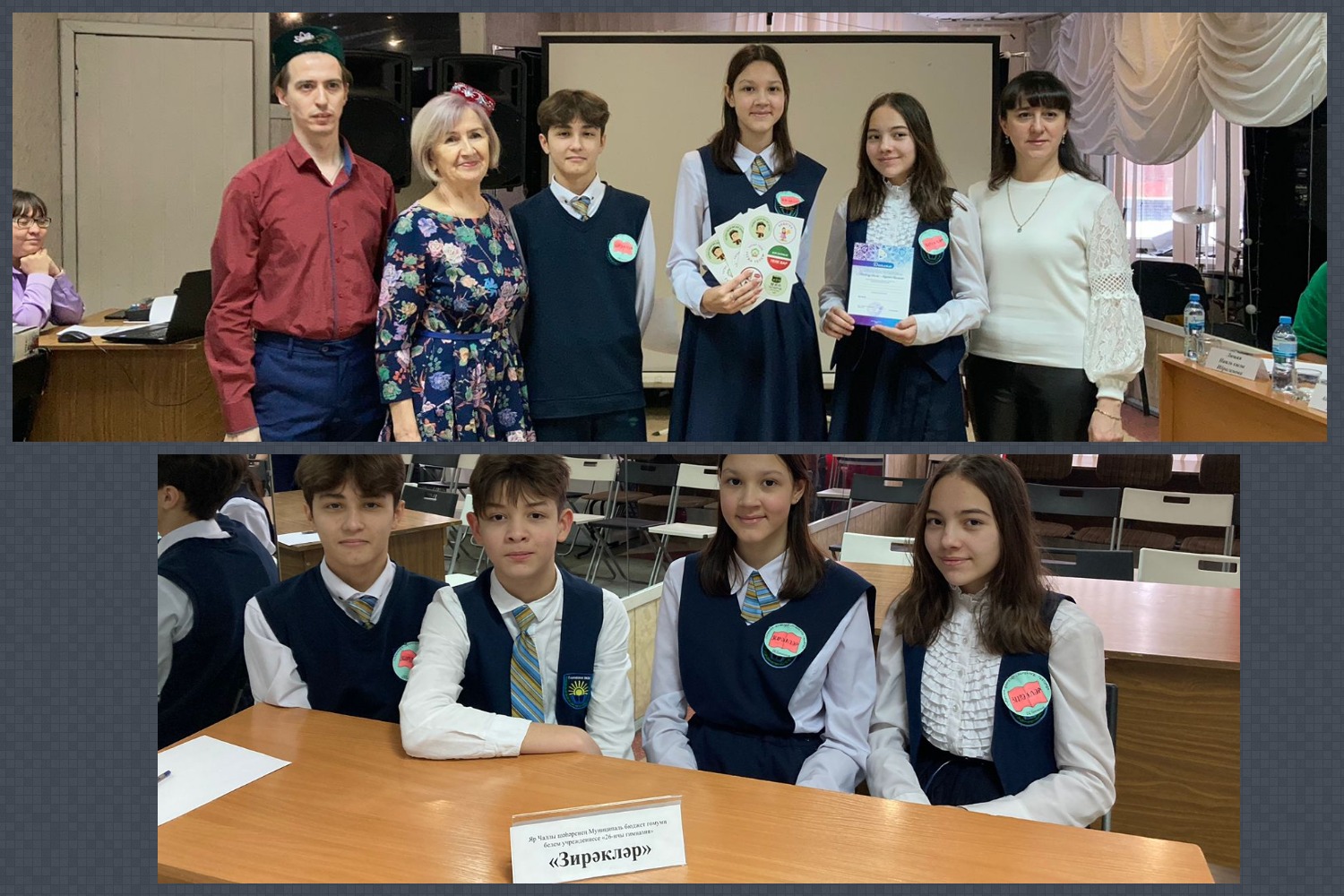 Учащиеся 7д класса - Закирова Амилия,Секретарев Илья, Сатдаров Данияр, Хуснеева Ясмина заняли II место на конкурсе « Мин татарча сөйләшәм». Руководитель: Сабирова Ф.В. Поздравляем!