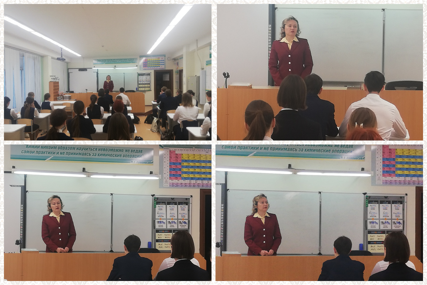 10 нчы А һәм 11 нче А сыйныф укучылары өчен һөнәри юнәлеш буенча лекция. Лекцияне Роспотребнадзорның ТР буенча баш белгече Т.В. Ордина укый.