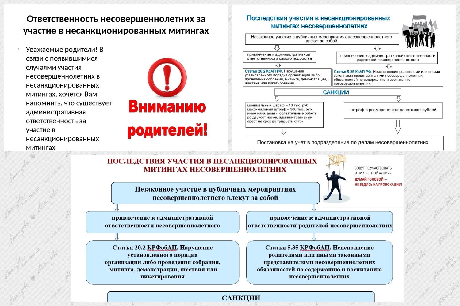Информация для родителей об ответсвенности учащихся при участиии в несанкционированных митингах(изучить)