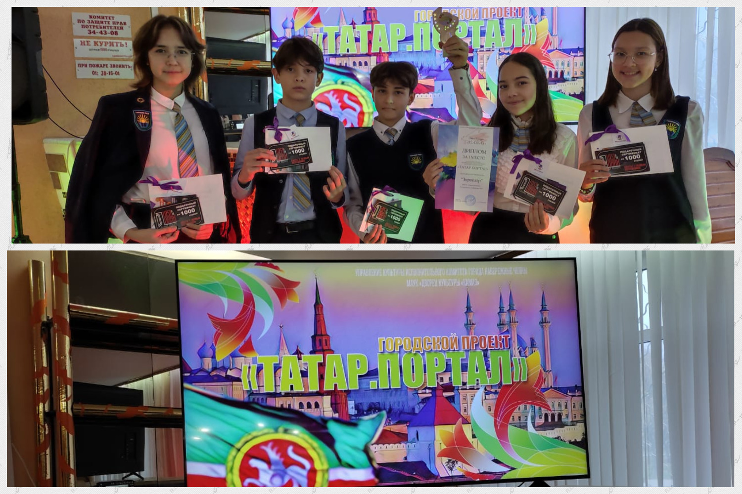 Опубликовано: 14.10.2022Команда учащихся 7д и 8г классов "Зирэклэр" на городском проекте "ТАТАР ПОРТАЛ" заняла 1 место. Поздравляем ребят!!!