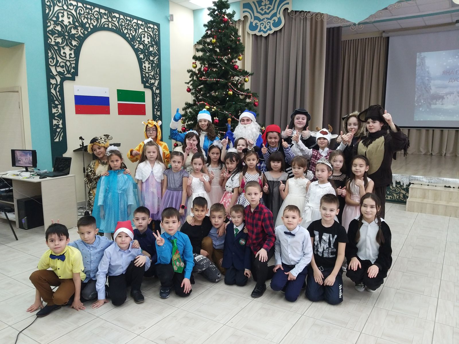 24.12 конне, башлангыч сыйныфлар очен Яна ел программалары утте.6 сыйныф укучылары катнашында музыкаль программаны балалар бик яратып каршы алдылар.Программада, укучылар, жырлы- биюле уеннарга кушылып, бик кунелле итеп , Кыш бабай hэм Кар кызы hэм башка геройлар белэн берлектэ кунел ачтылар.