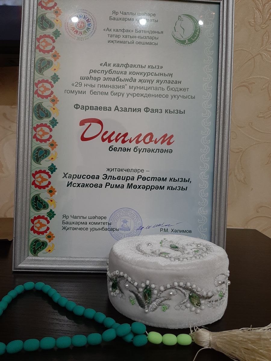 12 нче март көнне Республикакүләм "Ак калфаклы татар кызы" бәйгесенең шәһәр туры узды. Татар кызлары үзләренә самопрезентация ясалыдар, иҗади бәйгедә, җанлы әнгәмәдә, дисбе ясау һәм токмач кисү мастер классларында катнаштылар. Бу бәйгегә Азалияне туган (татар) теле һәм әдәбияты укытучысы Рима Мөхәррәм кызы Исхакова, педагог-оештыручы Эльвира Рөстәм кызы Харисова, хореограф Рәсүлә Назыйф кызы Фәтхлисламова әзерләделәр.