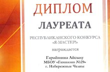 Ученица 7 класса Гарайшина Айсылу стала призером в республиканском конкурсе "Я - Мастер", который прошел в г. Казани. Учитель технологии Ханнанова Гузалия Нурзадаевна.