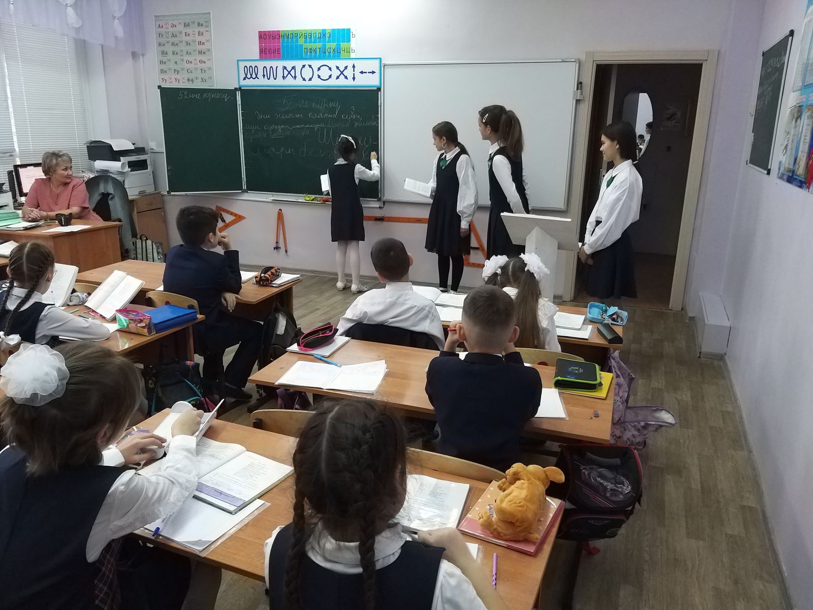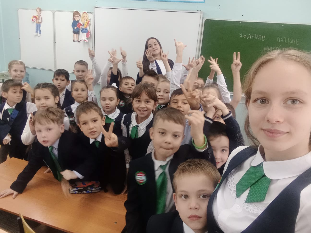 Отряд ЮИД 4б класса провели экскурсию "Безопасная дорога в школу" для первоклассников.