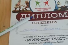 Интеллектуальную игру "Мин - патриот" по сказкам Габдуллы Тукая провела в нашем лице специалист из МЦ "Орион". Ребята активно поучаствовали, были награждены дипломами, а также каждый участник получил в подарок ручку с памятной гравировкой.
