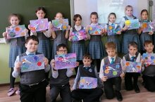 В честь Дня космонавтики ученики 3 В класса изготовили тематические открытки, приняли участие в викторине, нарисовали рисунки и подготовили мини проекты.