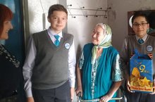 Ребята, из школьного отряда ЮнАрмии поздравили подшефного ветерана ВОВ с наступающим праздником 9 мая и вручили ей поздравительные открытки от Мэра города Набережные Челны Н.Г. Магдеева и Президента Республики Татарстан Р.Н. Минииханова