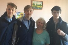 Ребята, из Школьного Совета Учащихся Лицея поздравили подшефных ветерана ВОВ с наступающим праздником 9 мая и вручили им поздравительные открытки от Мэра города Набережные Челны Н.Г. Магдеева и Президента Республики Татарстан Р.Н. Минииханова.