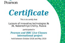 Захватывающее партнерство между Лицеем и Pearson и BBC Live Classes дает студентам ценную возможность войти в динамичный глобальный класс. Ученики получают ценный опыт общения с ребятами со всего мира, идеи и навыки, которые помогают в учебе.