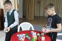 22 ноября, в актовом зале Лицея, собрались ребята 1-4 классов на увлекательный мастер-класс по сборке Кубика-Рубика. Григорьев Дима (ученик 3А кл.) и Шарифуллин Денис (ученик 4кл.) рассказали об истории кубика. Показали простейшую сборку головоломки. У ребят набралась целая коллекция головоломок. На скоростную сборку Кубика-Рубика вызвался дошкольник Пасынков Андрей. Его результат 2 мин 24сек. Григорьев Дима обыграл своего соперника на 22сек.