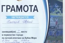 Поздравляем ученика нашего лицея, занявшего I место в первенстве города по легкой атлетике на Кубок Мэра в беге на 1500 м.