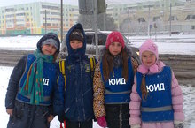 даже, когда снег и ветер отряд ЮИД 4 "А" класса все равно выходит в рейд, юные инспектора движения внимательно смотрят, есть ли нарушители среди участников движения