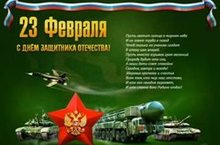 Уважаемые мужчины, сердечно поздравляем Вас с Днем Защитника Отечества — праздником, который вобрал в себя богатые и славные ратные традиции, который олицетворяет мужество и героизм защитников Родины. От всего сердца желаем Вам мира, здоровья и долголетия, бодрости духа и семейного согласия, радости и добра!