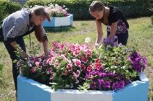 Гимназия тоже готовится к встрече с учащимися, ремонт и благоустройство территории идет полным ходом.