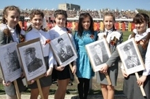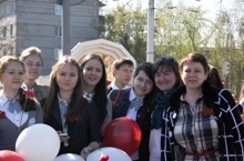 Учащиеся десятых классов, под руководством директора Гимназии Федоренко Елены Борисовны, приняли участие в митинге возле памятника Родина Мать.
