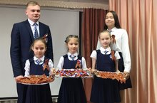 с 20 апреля стартовала акция "Георгиевская ленточка", в ходе которой учащимся 1-х классов спикер гимназии торжественно вручил георгиевские ленточки.