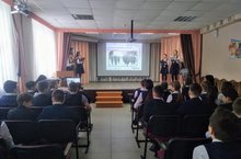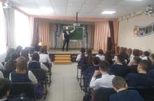 В нашей гимназии в рамках патриотического воспитания для учащихся 8 класса был организован и проведен урок мужества. На мероприятие был приглашён подполковник, прошедший Афганскую и Чеченскую войну.