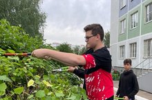 Учащиеся гимназии , которые трудоустроены через центр занятости, осуществляют работу на школьном участке.