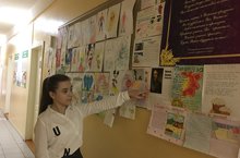 В актовом зале был организован и проведен мини концерт с участием учащихся 2-8 классов и торжественное открытие НАЯ учителями МО английского языка. Ведущая Подсекаева Ника представляла участников концерта, рассказала интересные факты о Великобритании и провела флеш моб для младших школьников и все это на английском. «Открыватели» праздника участники концерта шутили в Ералаше Jumble , пели Караоке «London Bridge is falling down» и посмотрели мотивационный видеоролик по изучению английского языка. Чудновская София станцевала на пуантах танец, сочетая искусство хореографии и любимого предмета с учебником английского