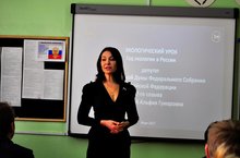Сегодня в нашей гимназии в 10 классе прошел экологический урок по теме: «Год экологии в России». Урок проводила депутат Государственной Думы Федерального Собрания Российской Федерации 7-го созыва КОГОГИНА Альфия Гумаровна. Она познакомила ребят с основными экологическими проблемами, которые беспокоят каждого гражданина, рассказала, что на сегодняшний день уже сделано для решения данных проблем как со стороны государства, администрации города, так и частными предпринимателями и даже обычными людьми. Урок проходил в форме активной беседы с ребятами, был ярким и запоминающимся. Многие из наших десятиклассников в ходе данного урока были воодушевлены на проведение акций и экологических мероприятий. В конце беседы Альфия Гумаровна и руководитель ШСУ обменялись памятными подарками (книгами о редких растениях и животных).