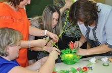 10 классницы устроили для учителей мастер – класс «Букет из конфет». Учителя с увлечением занялись делом и собрали целую корзину ярких конфетных цветов.