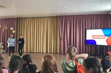 В лагере состоялась эвристическая беседа о РДДМ «Движение первых». Просмотр видеопрезентации и обсуждение.