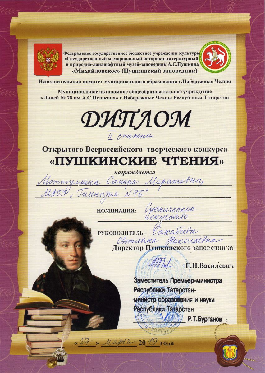Открытый Всероссийский творческий конкурс "Пушкинские Чтения" 01.04.2019