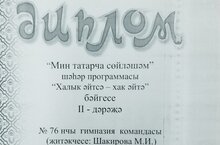 “Мин татарча сөйләшәм” шәһәрдә туган телебезне үстерүгү юнәлдерелгән иң популяр проект. Укытучы Шакирова М.И җитәкчелегендәге команда бу программаның беренче турында катнашып, 2 нче урын яулады. Без аларга киләчәк конкурсларда уңышлар һәм җиңүләр телибез.