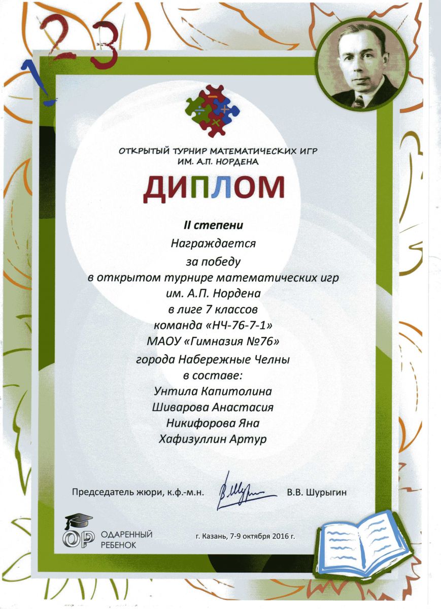 Турнир математических игр им. Нордена 12.10.2016