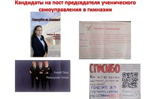 Начиная с 16 сентября стартовала предвыборная «гонка» Председателя Совета Самоуправления. О своем желании участвовать в выборах заявили девять гимназистов. Все кандидаты разработали достойную предвыборную программу. Они выдвинули актуальные и интересные идеи, так как сами являются активными участниками и организаторами всех мероприятий в гимназии. В ходе предвыборной компании ребята выступали в разных классах, встречались с избирателями, использовали наглядную агитацию.