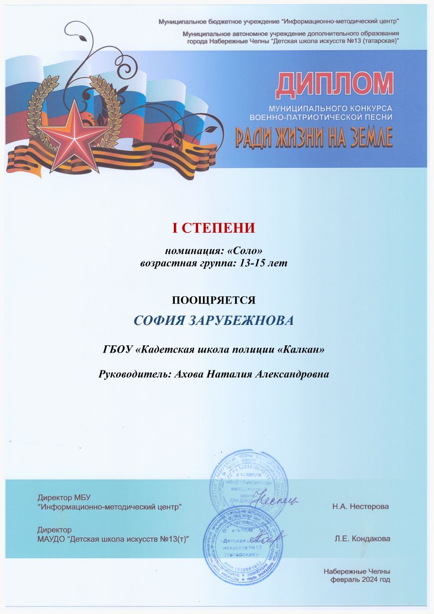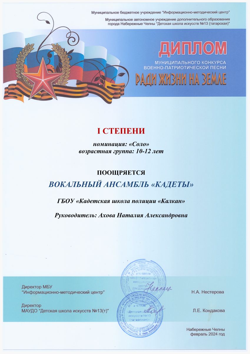 Кадеты ГБОУ "Кадетская школа полиции Калкан" приняи участие в Муниципальном конкурсе военно-патриотической песни "Ради жизни на Земле".