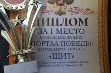 В течение года команда наших кадет 11 класса принимала участие в городском проекте " Портал победы". И вот результат-1 место! Молодцы,ребята!