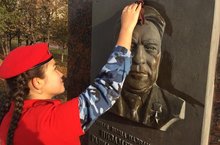 В рамках месячника уборки территории , отряд Юнармии помыли памятник Р. Низаметдинову, убрали прилегающую к ней территорию