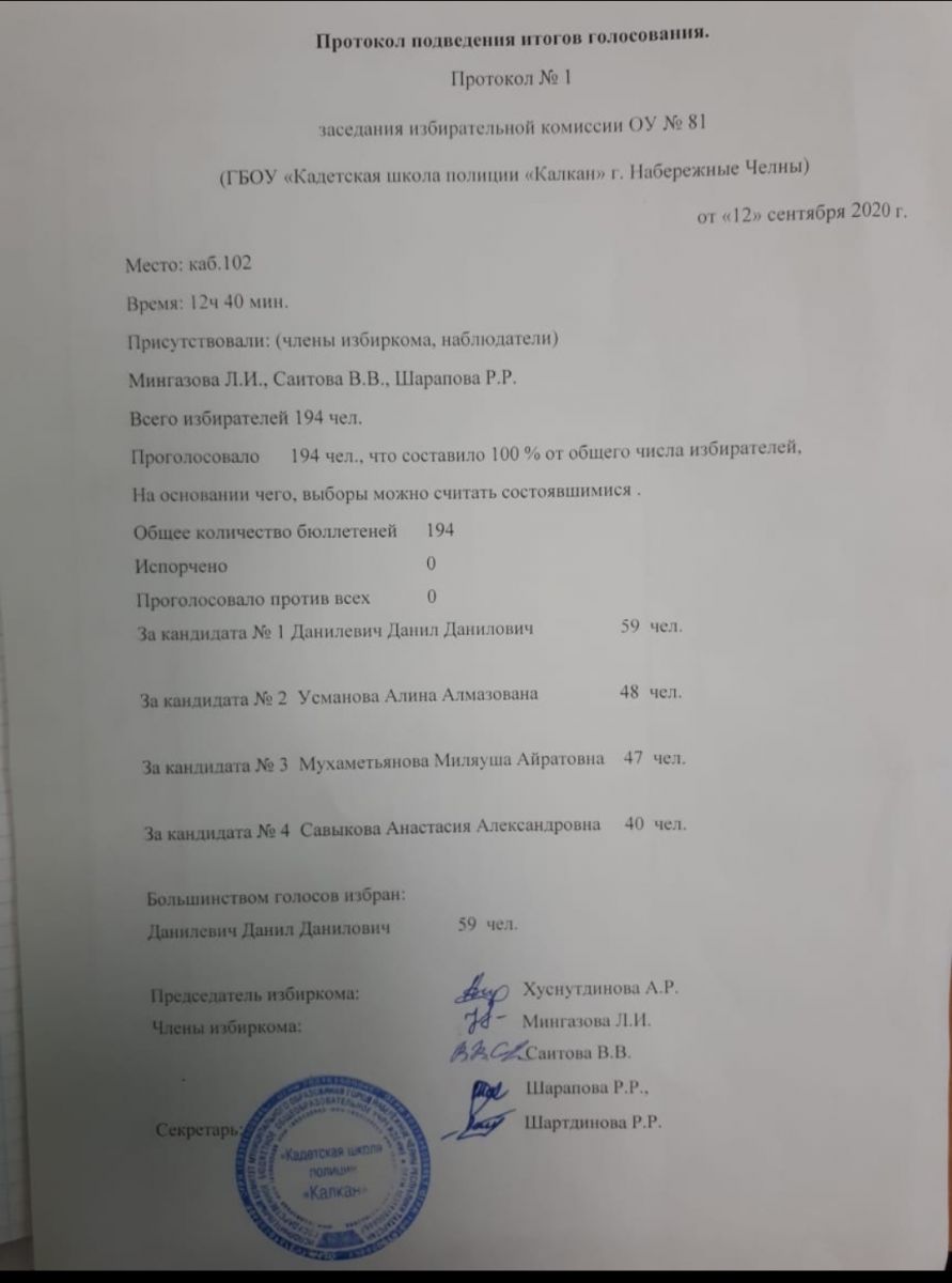 Большинством голосов избран Данилевич Данил