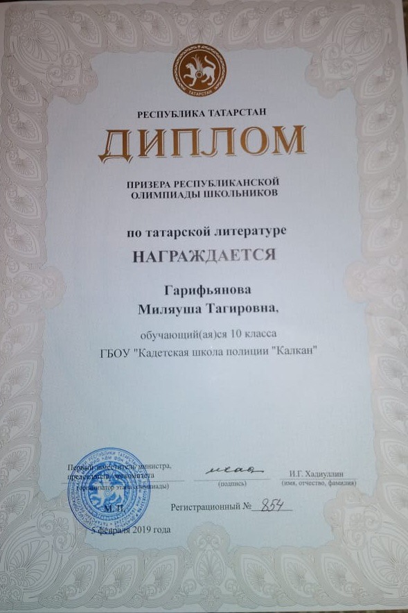 В городском туре Республиканской олимпиады по татарской литературе Миляуша Гарифьянова ученица 10 класса нашей школы стала победительницей. На региональном этапе в Казани Миляуша стала призёром. Поздравляем!