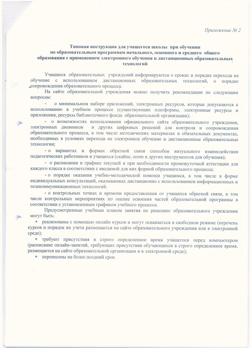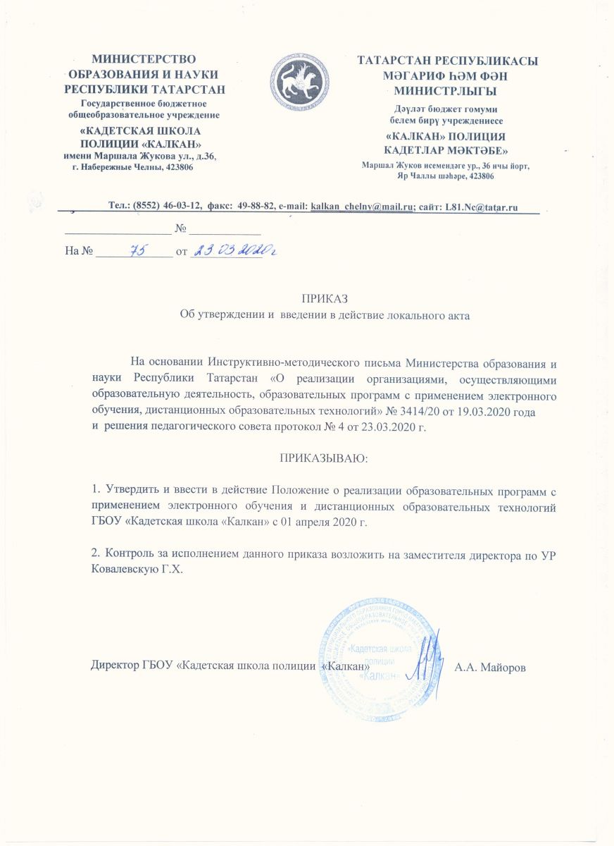 ПРИКАЗ об организации дистанционного обучения на период с 1-12 апреля 2020
