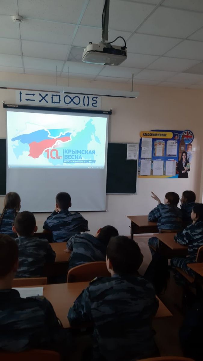 Опубликовано: 18.03.2024Сегодня в КШП "Калкан" прошли занятия из цикла "Разговоры о важном" на тему "Крым и Севастополь: десят лет в родной гавани". Кадетам расказали о важности этого исторического события, которое разворачивалось прямо на глазах современных россиян.