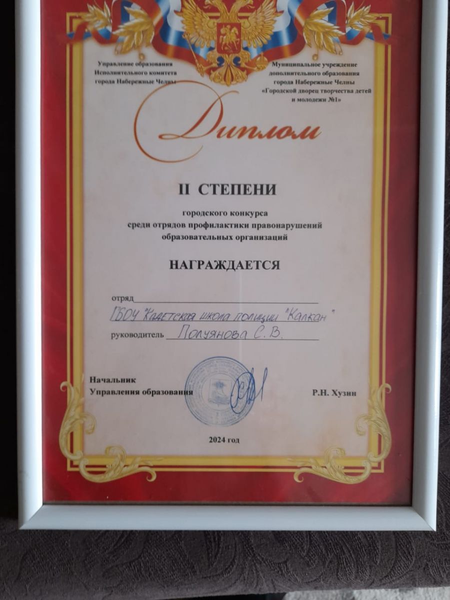 Опубликовано: 27.03.2024Поздравляем кадет КШП "Калкан" с Дипломом II степенив конкурсе отрядов профилактики правонарушений образовательных организаций.