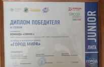Поздравляем команду 10А класса с победой в молодежном проекте "Города Мира". руководитель Антипова И.З. Мы им желаем удачи и говорим большое спасибо! Вы-молодцы!