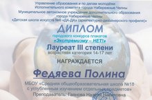 Поздравляем Федяеву Полину, ученицу 10А класса, участницу ОППН "Ритм" с почётным III местом в городском конкурсе плакатов "Экстремизму - НЕТ!".