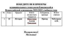 Победители и призеры муниципального этапа олимпиады по истории 08.12.2021