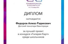 Картографический проект ученика лицея, Федорова Алмаза, получил диплом в номинации "Лучший проект подготовленный школьниками" на 22 конференции пользователей ESRI в России и странах СНГ. Кроме того она также вошла в 3-ку общего голосования, где опередила многие университетские проекты. Ежегодная конференция ESRI это крупнейшее событие в области ГИС, в котором принимают участие представители бизнеса, руководители городов, крупнейших ВУЗов страны. В этом году например участвовали представители таких компаний как "Лукойл", "Татнефть", "Башнефть", "Роснефть", "Сбербанк", "Пятерочка", такие ВУЗы как МГУ им. Ломоносова, МАРХИ, Пермский государственный университет, СпбГАСУ, МИИГАИК, администрация города Новосибирска и Смоленской области. Руководителем Алмаза выступил преподаватель АНО "Детский технопарк "Кванториум" небезыствестный в нашем лицее Валиахметов Динар Ирекович. Поздравляем Алмаза с этим замечательным достижением!