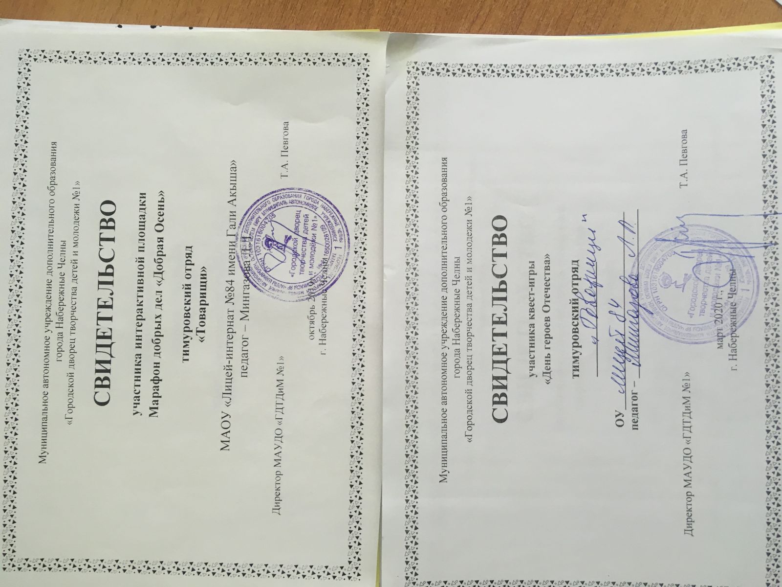 - Диплом муниципального конкурса видеороликов, посвященного 75-летию Победы в Великой Отечественной войне «Моя семья причастна к той Победе»