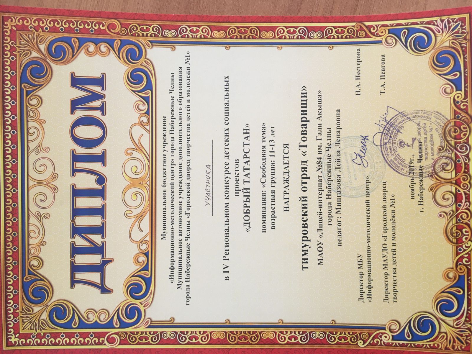 ДИПЛОМ 1 СТЕПЕНИ "ХАЛКЫБЫЗ БАРЛЫГЫ- МӘҢГЕЛЕК!"