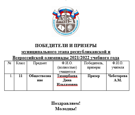 Победители и призеры муниципального этапа олимпиады по обществознанию
